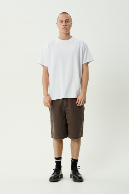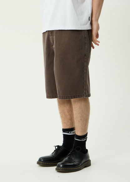 AFENDS Mens Lil C - Denim Baggy Short 22" - Washed Coffee