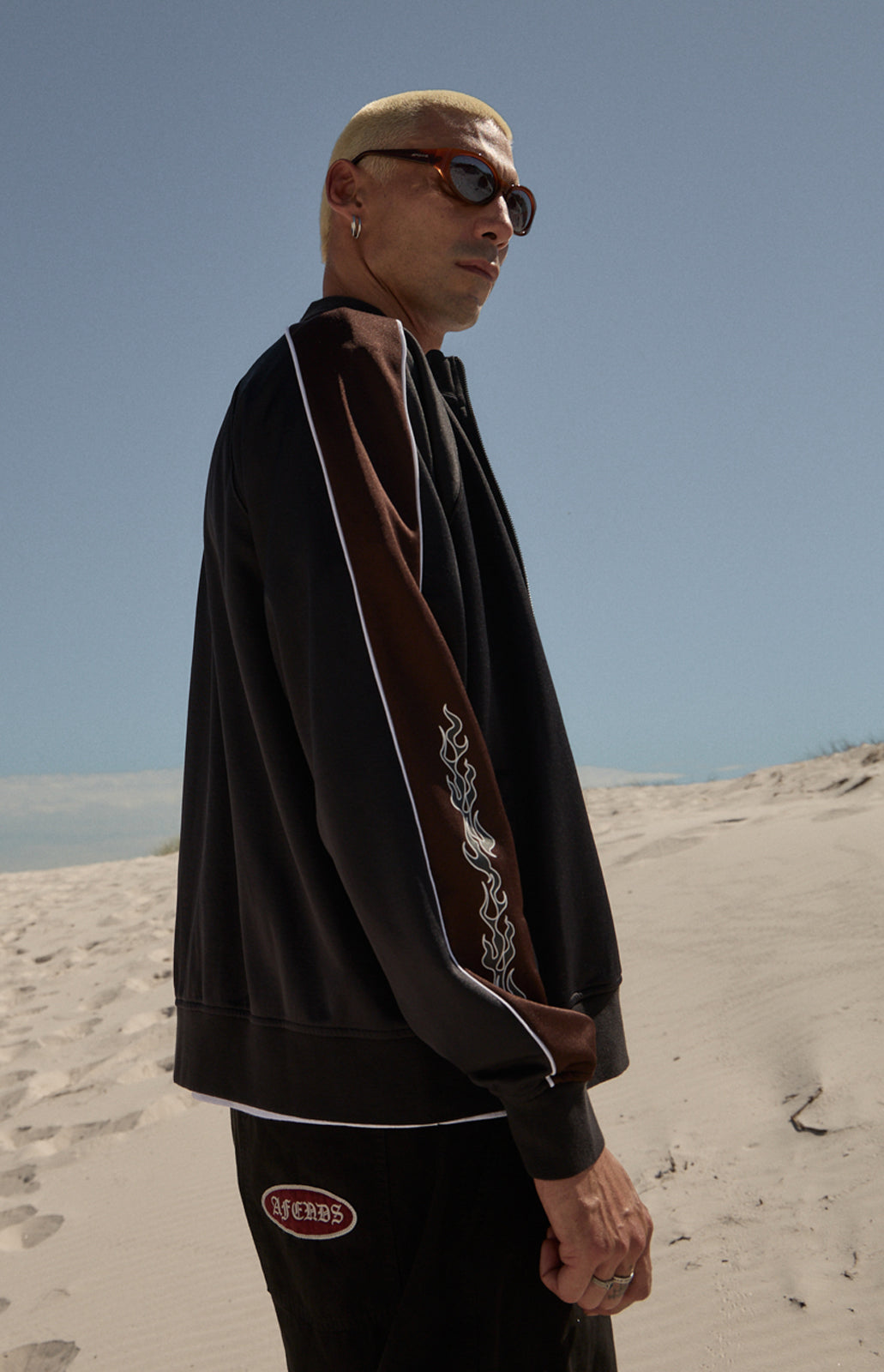 AFENDS Mens Machine - Zip Through Track Jacket - Black