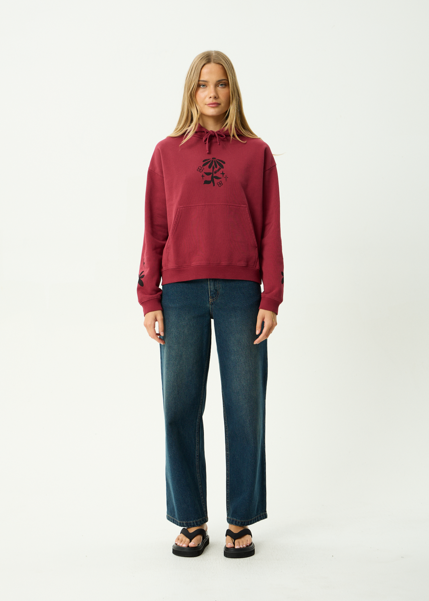 AFENDS Womens Garden Variety - Pull On Hood - Washed Burgundy
