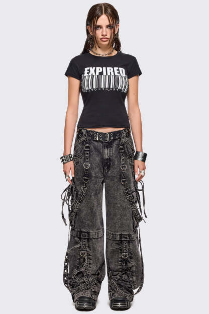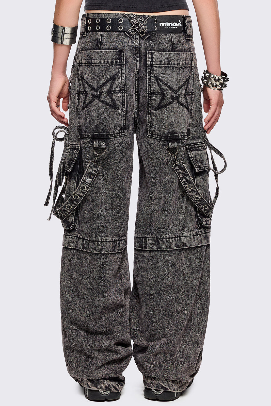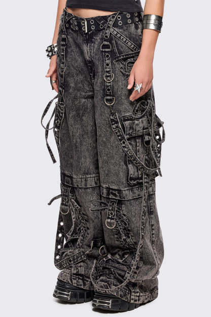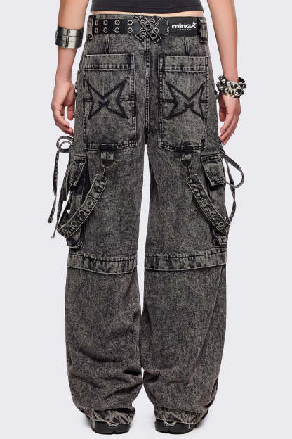 - Grey acid washed multi pocket cargo jeans