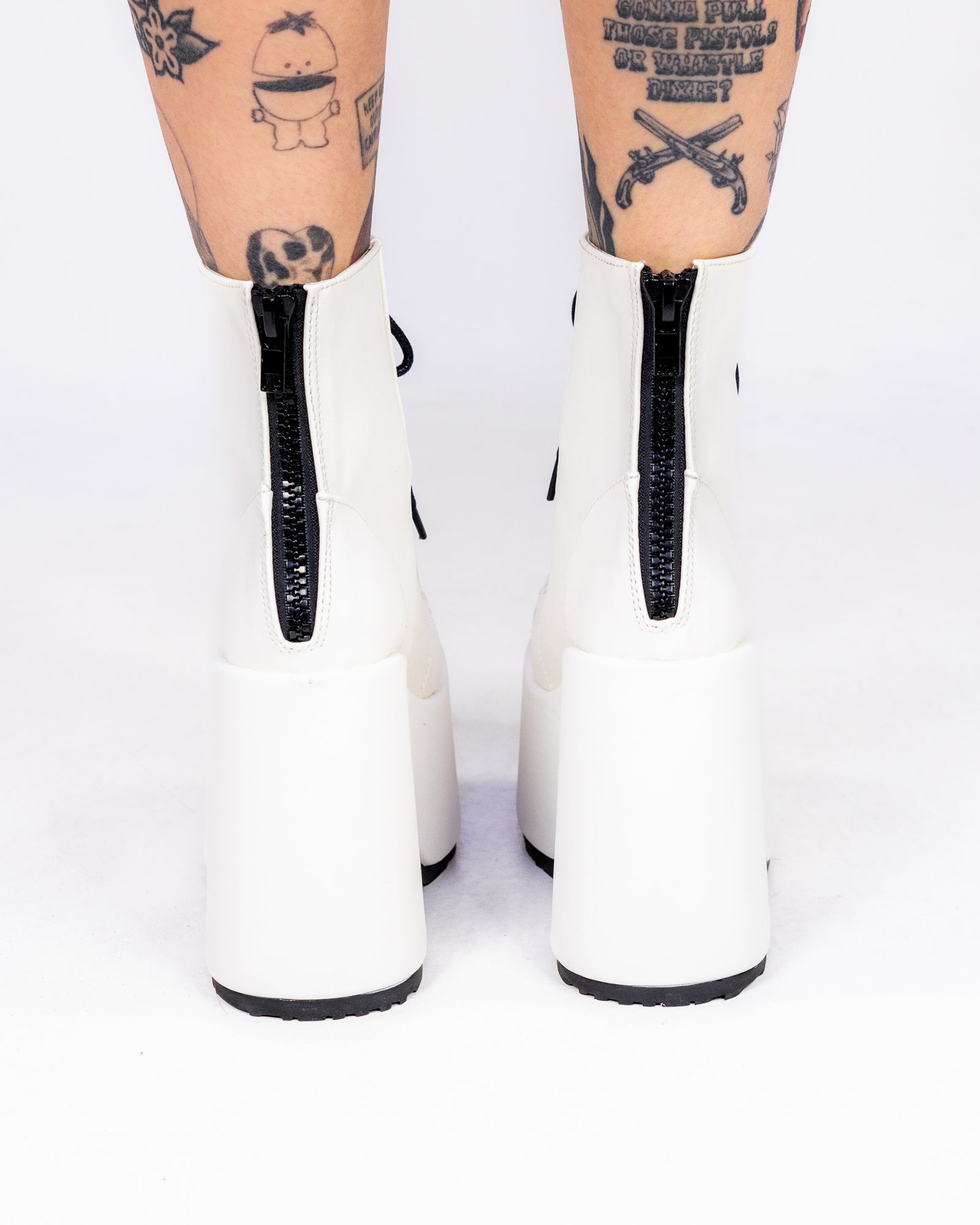Demonia White Lace-Up Women's Platform Ankle Boots