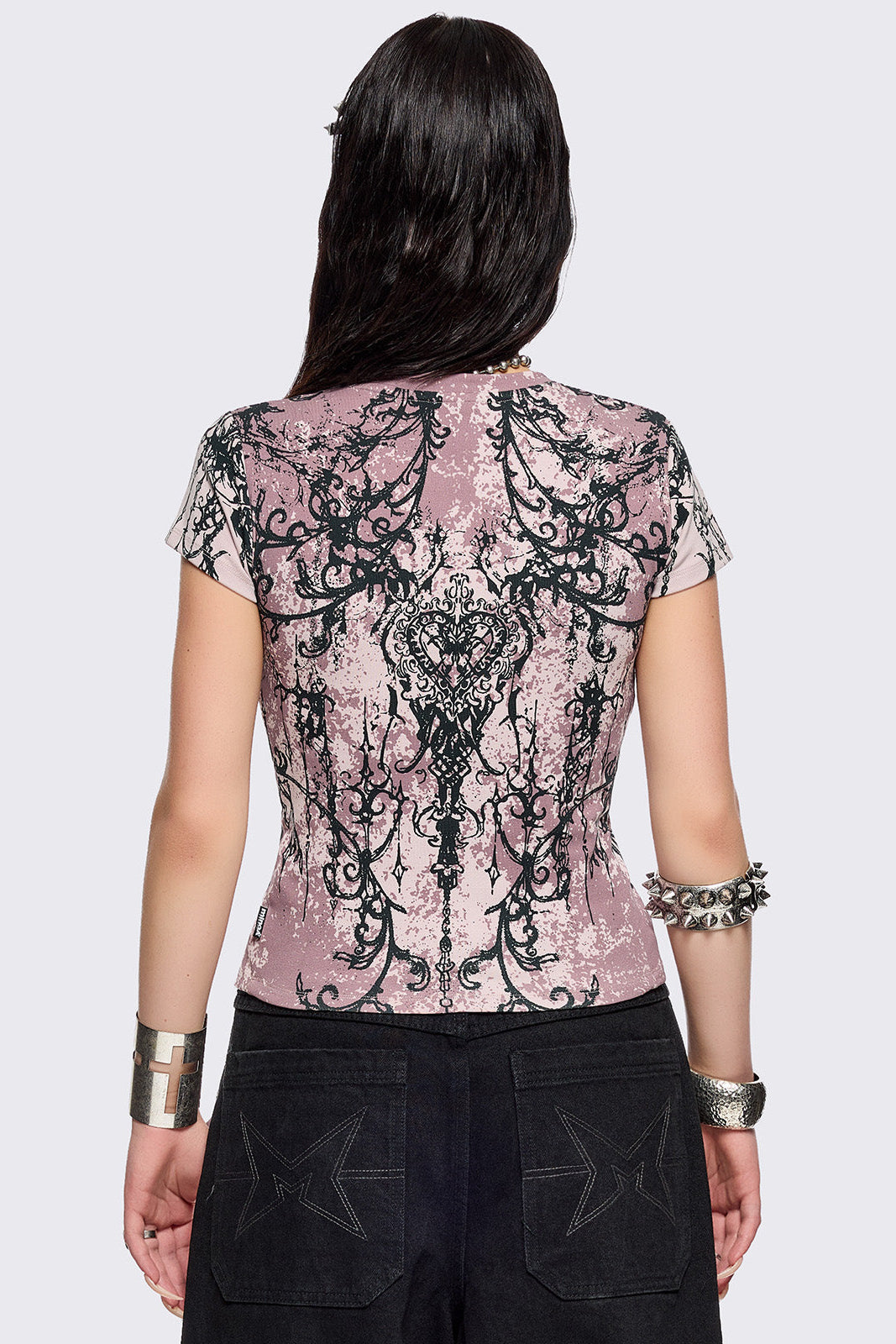 - Black grunge heart graphic print
