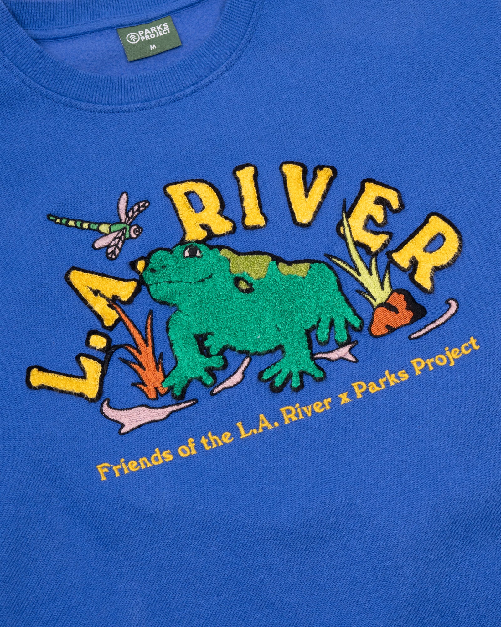 Inspired by the rivers that are home to so much diversity, our crew is made from 80% cotton and 20% polyester, and features embroidered toad basking and dragonflies roaming along the LA River.