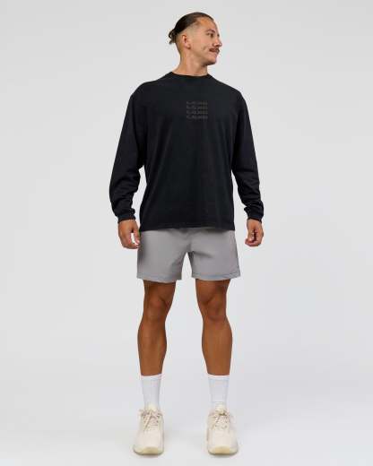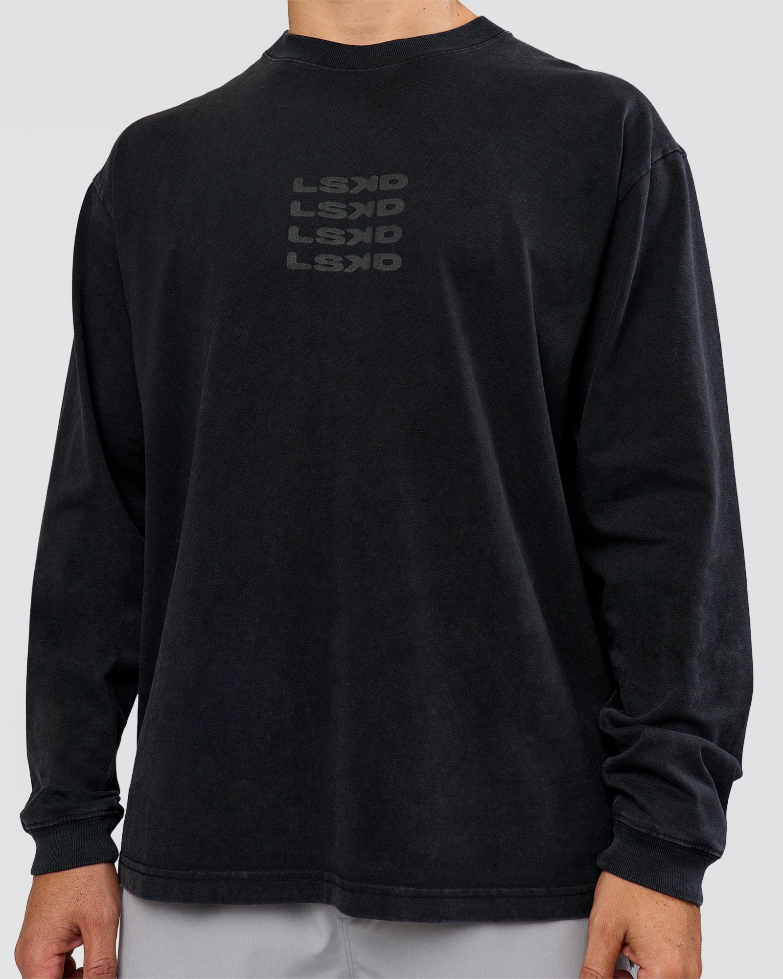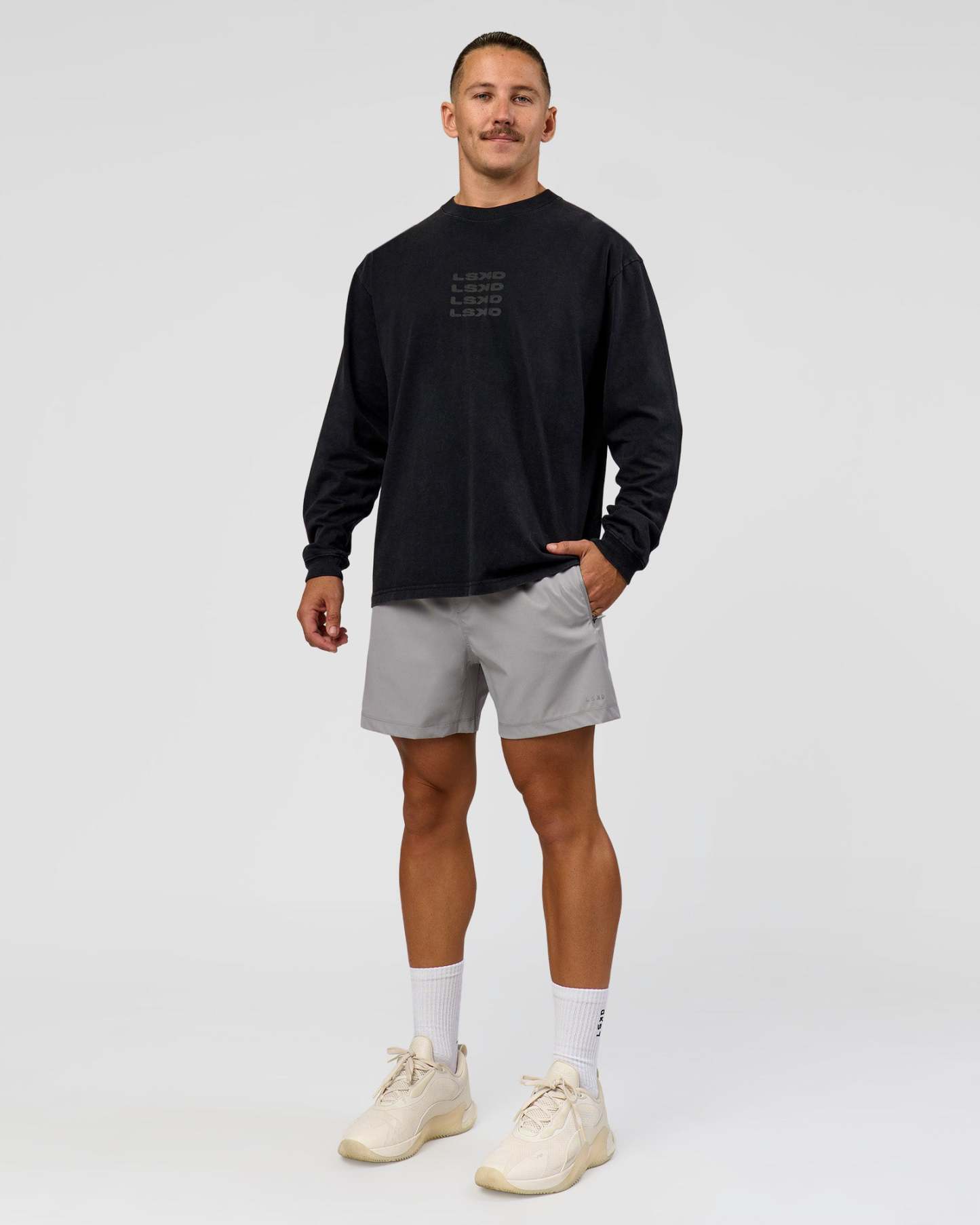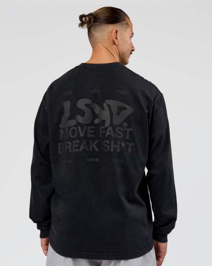 Move Fast Heavyweight Oversized Long Sleeve Tee - Black Washed