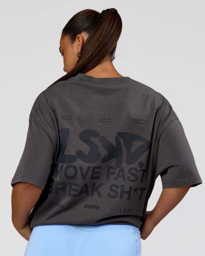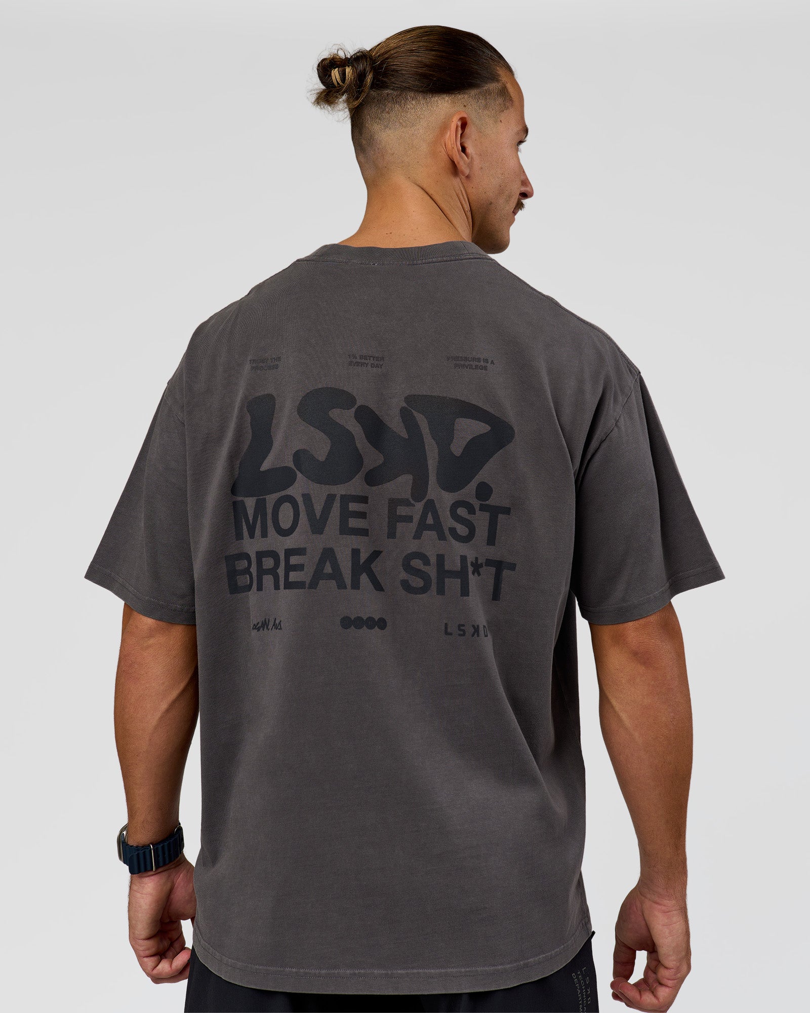 Move Fast Heavyweight Oversized Tee - Dark Storm Washed