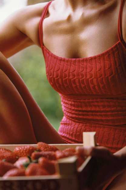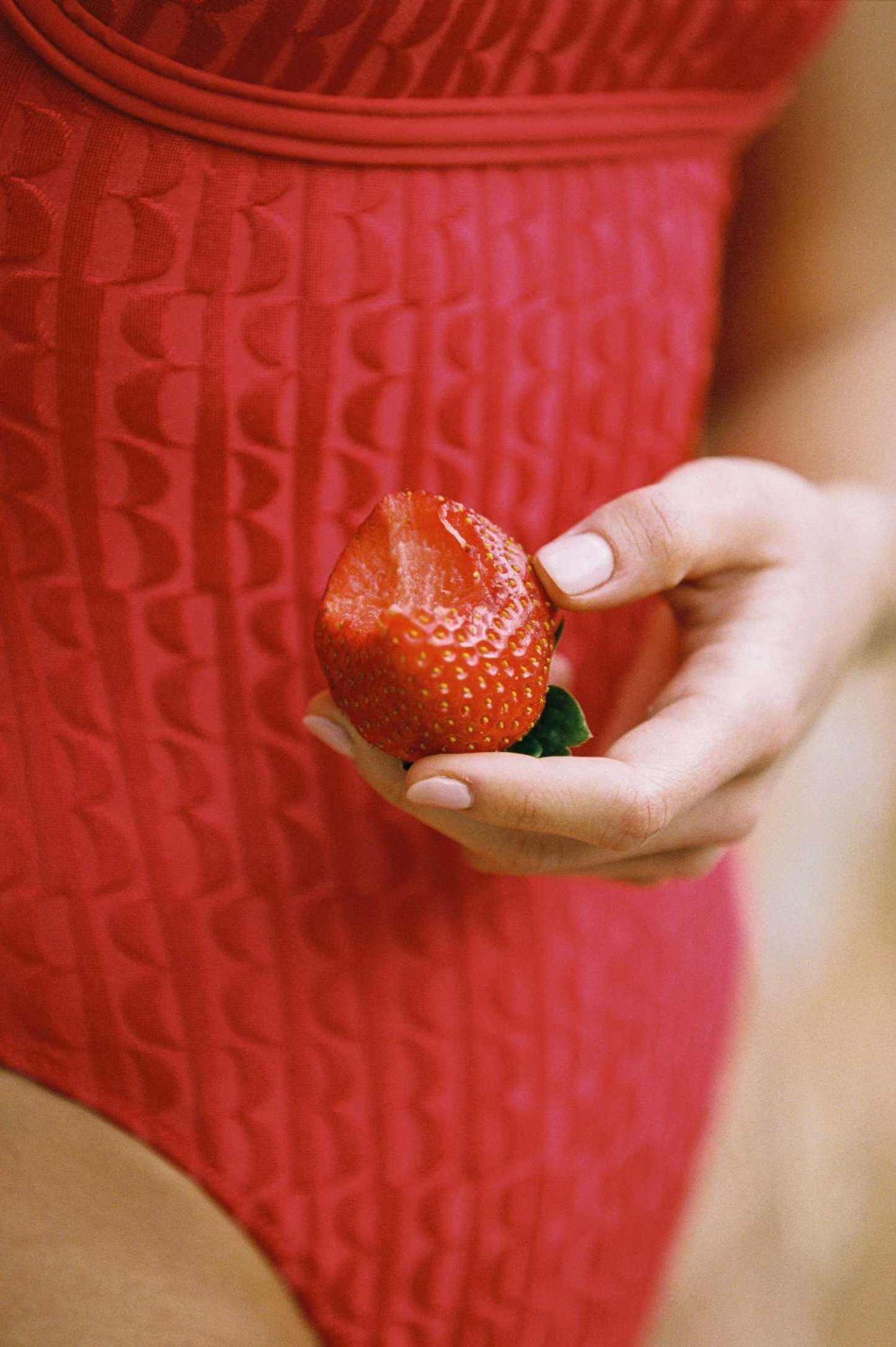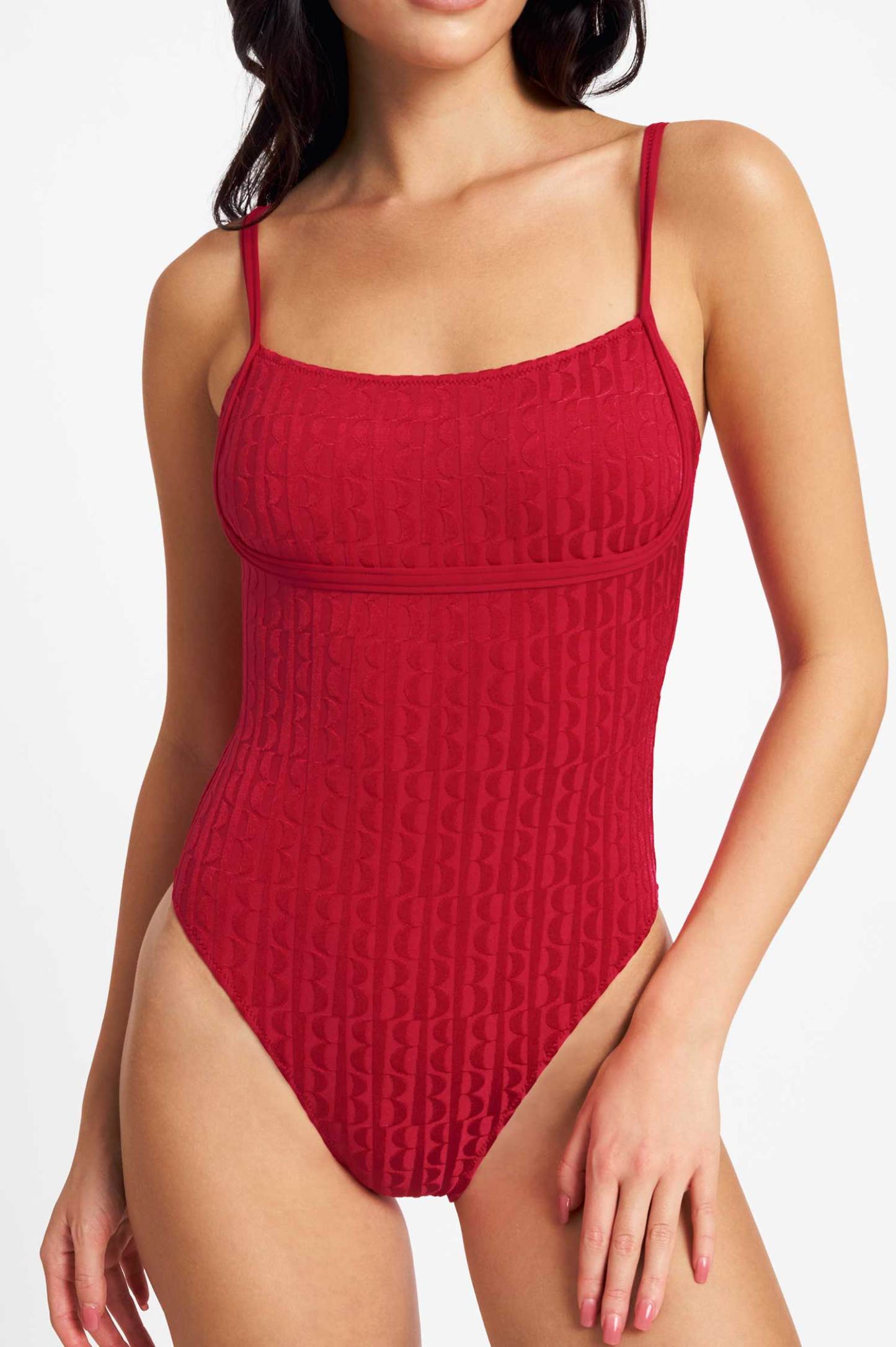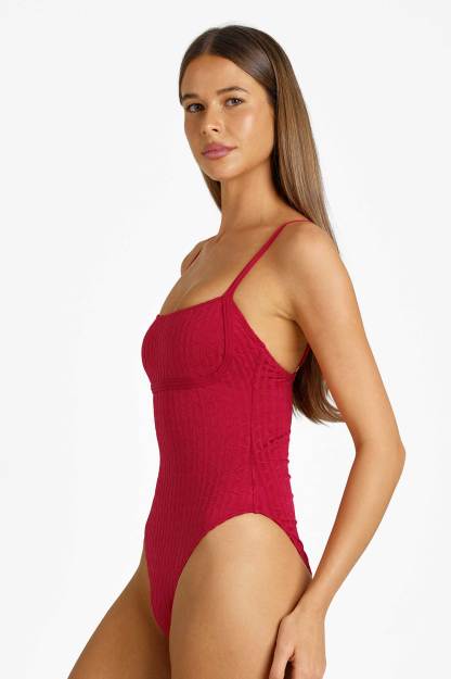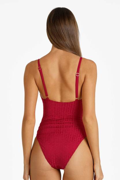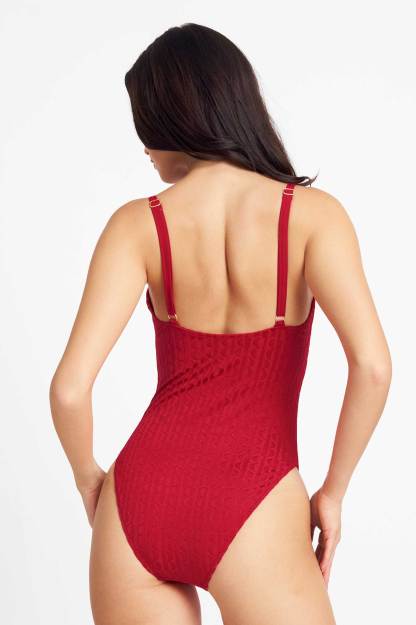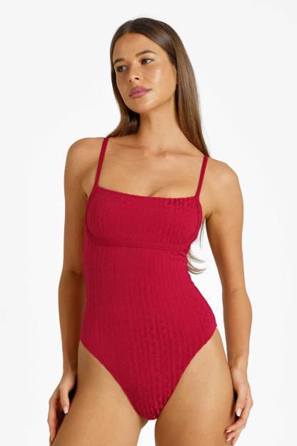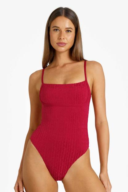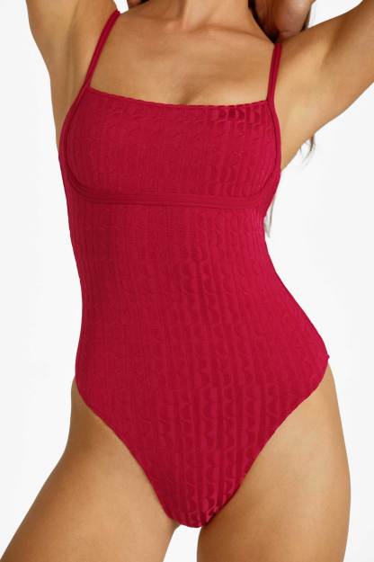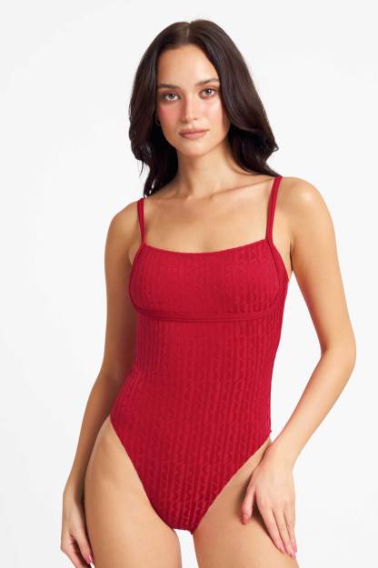Heidi Square Neck One Piece / Tomato Jacquard