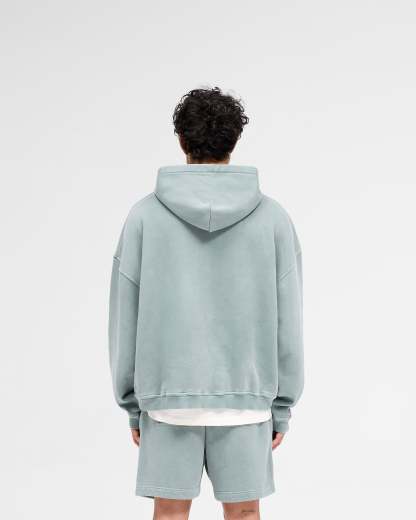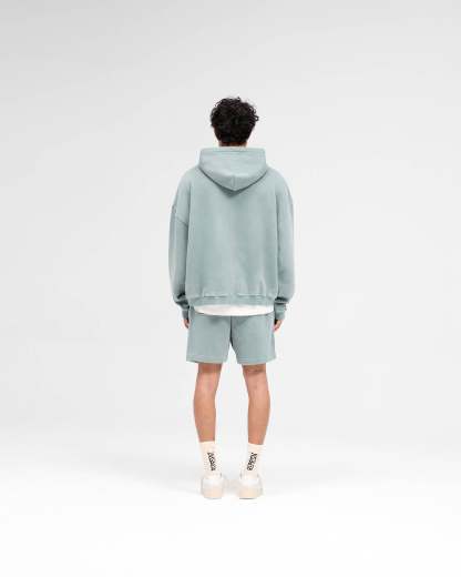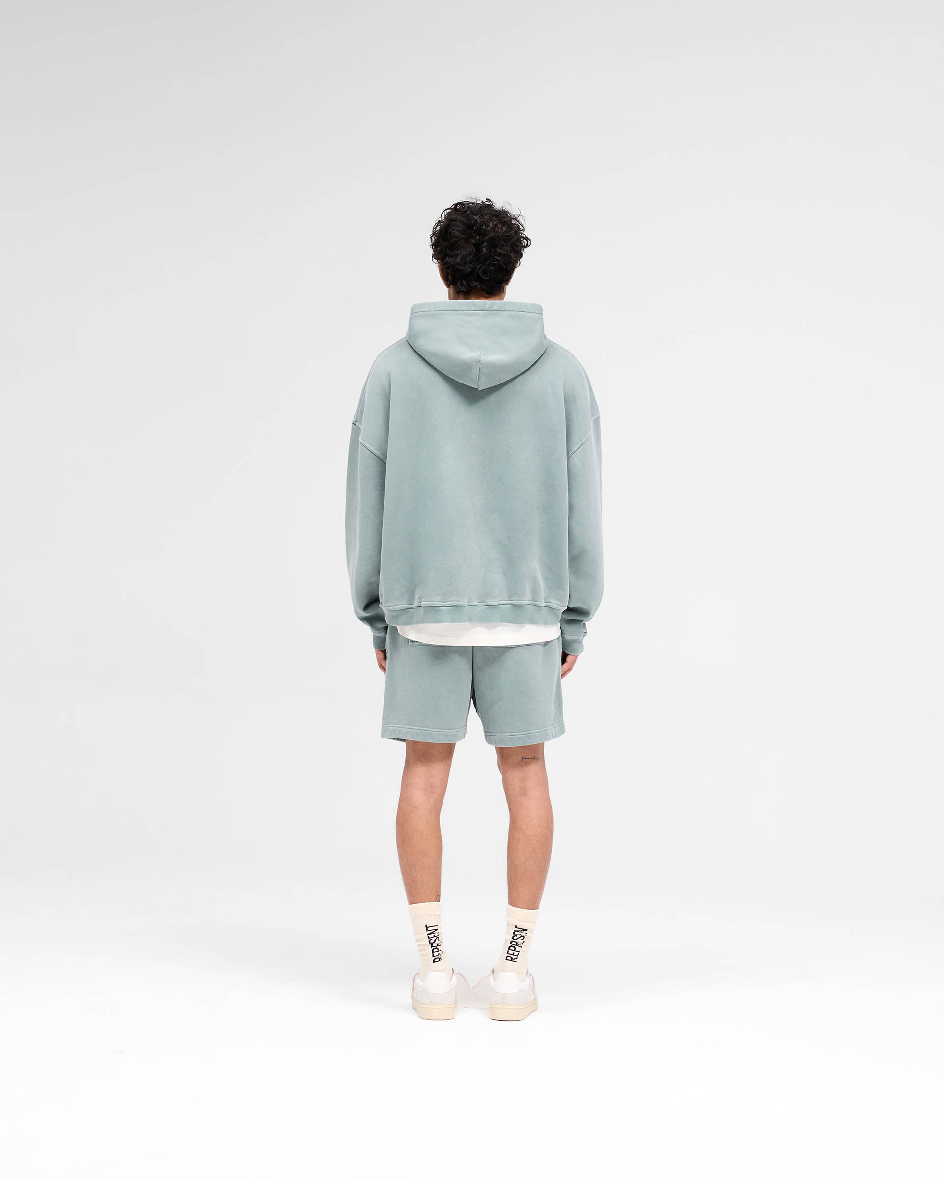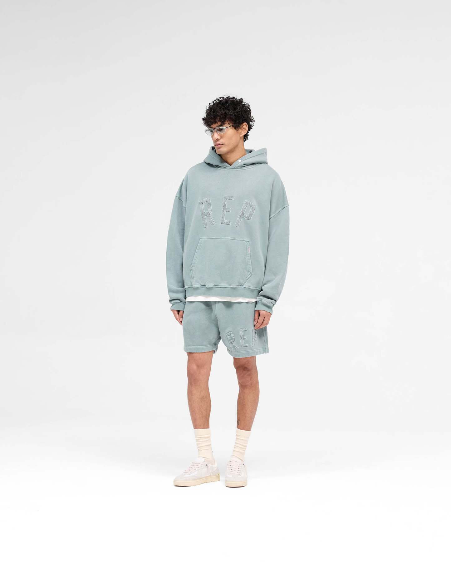 The Rep Applique Hoodie in Forest Green is crafted from brushed loopback cotton for a soft hand feel, with a boxy fit. It showcases a textured Rep applique to the front, finished with our signature metal bar logo to the pocket.