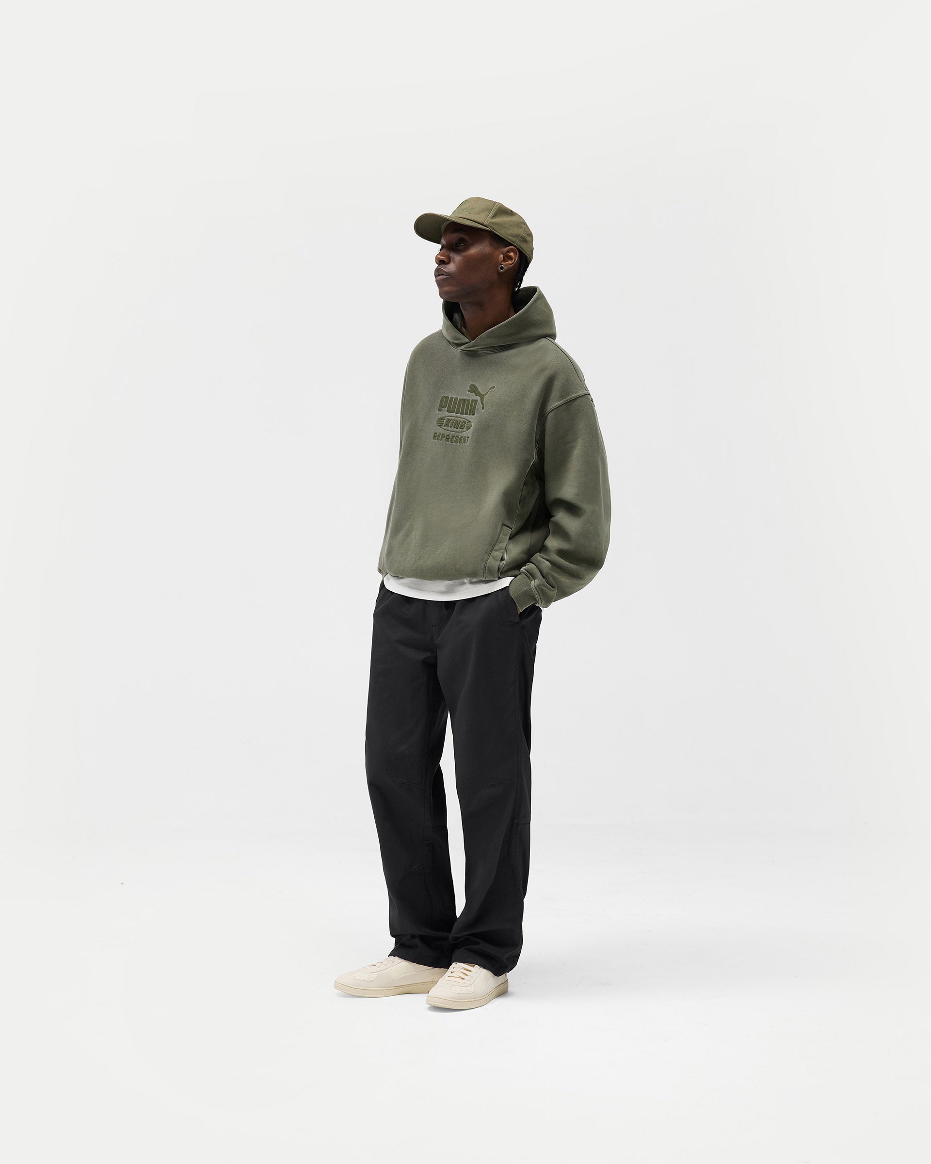 Introducing the Represent X Puma Graphic Hoodie in Night Pine, crafted from heavyweight cotton in an oversized fit. The hoodie is finished with collaborative graphics to the chest, blending Represent’s elevated streetwear aesthetic with Puma’s sporting legacy. Features include ribbed trims, kangaroo pocket, and adjustable hood.