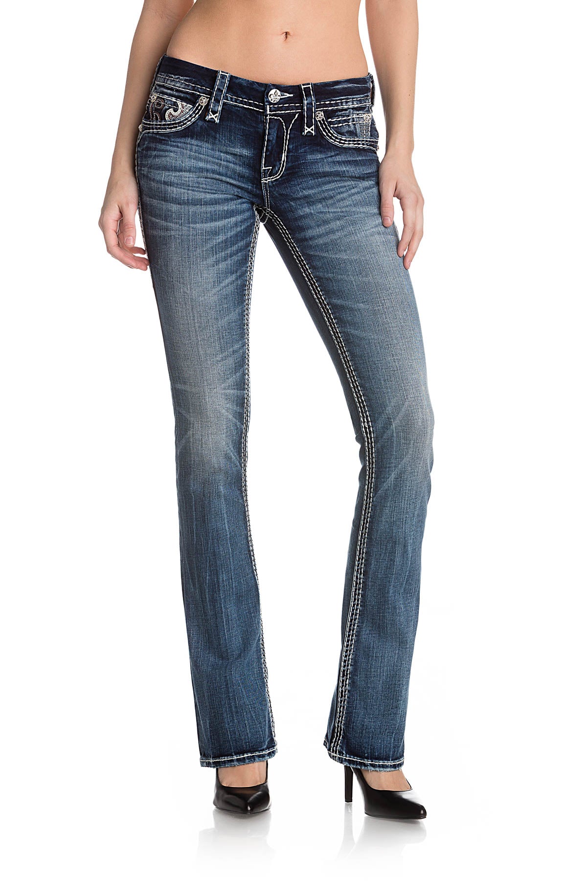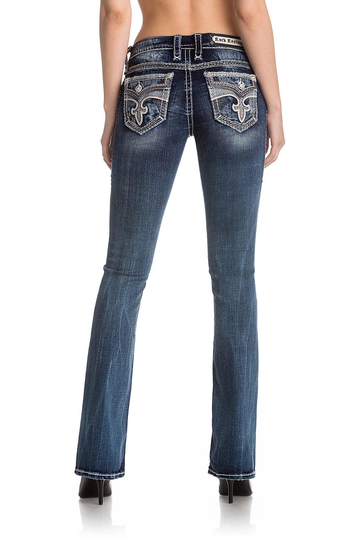 Rima Bootcut Jeans by Rock Revival crafted in a dark indigo wash, designed in Los Angeles.