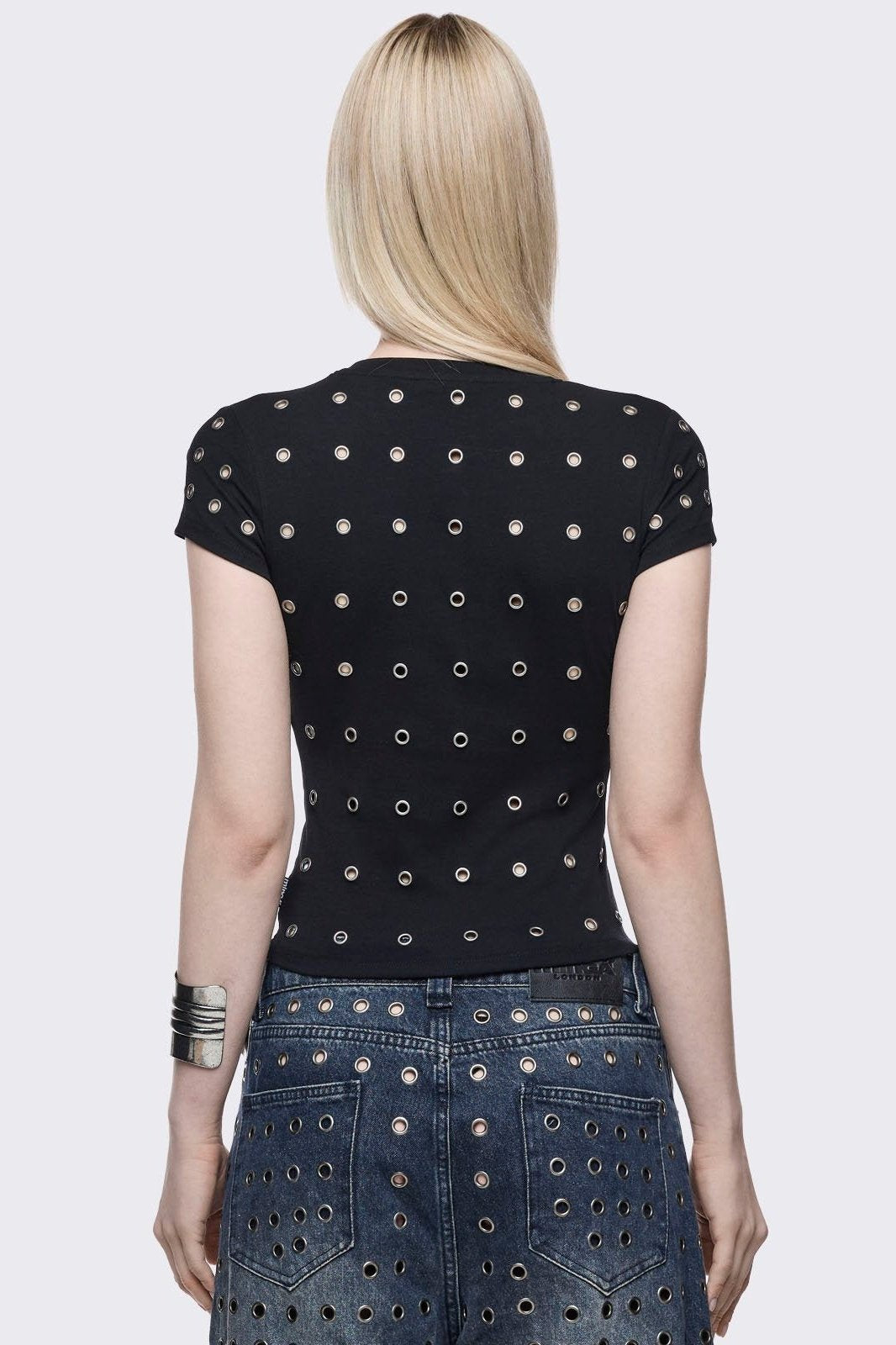 - All over silver eyelets