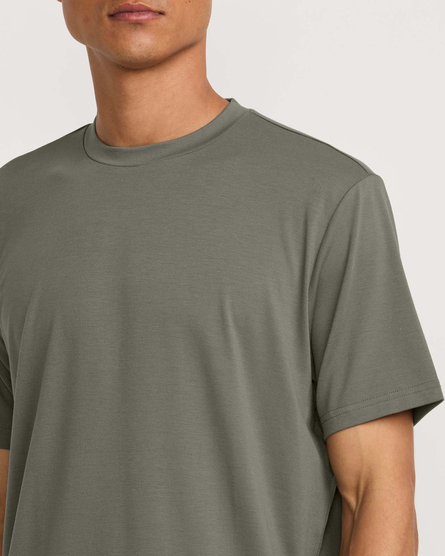 A poly lyocell tee built for everyday comfort. Soft brushed fabric melds with a regular fit and crewneck for premium, all-day ease.